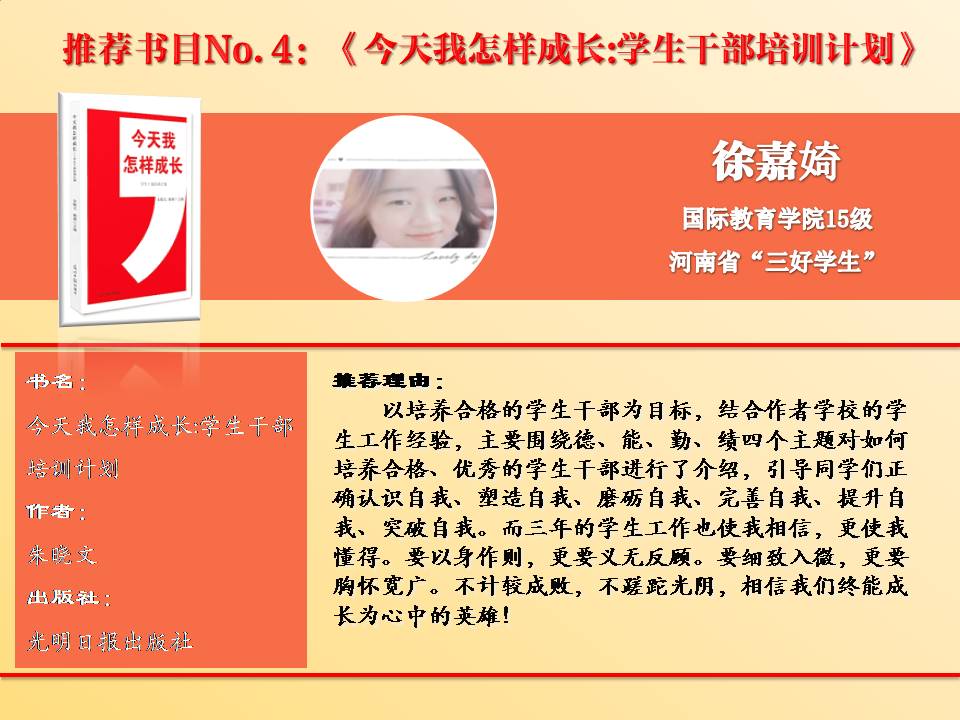【编者按】为进一步激发全校师生爱读书、会读书、读好书的浓厚兴趣,努力营造书香校园的良好氛围,校党委宣传部(新闻中心)今年继续策划推出荐书专题活动。本期“师长荐书”和“学长学姐荐书”专题活动,特别邀请8位教师和8位同学精心推荐图书16本,在学校官方网站、官微等平台同步推送,敬请关注。