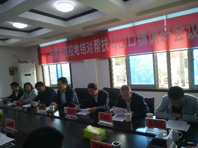 9月27日上午,bet36体育在线校地结对帮扶团队到达马山口镇。马山口镇镇长樊红涛主持召开了中原农耕文化研讨会。会上,专家博士们观看了马山口镇专题宣传片,对该镇的历史文化和新时代马山人的精神面貌有了充分了解,然后通过实地调研,走访了宛西烈士墓碑园区规划、红色教育基地建设、宛西地委办公遗址开发,调查了南阳市先进电子商务平台、岳岗村爱心扶贫商店、汪沟村易地搬迁新村建设等项目的建设情况。下午,在马山口镇人大主席沈礼华的指引下,bet36体育在线工会高金星主席,汪庆华教授及部分博士专家前往关帝坪村踏察了马山将要发展的旅游脱贫项目,航拍了地形地貌,走访了贫困户和致富能手。