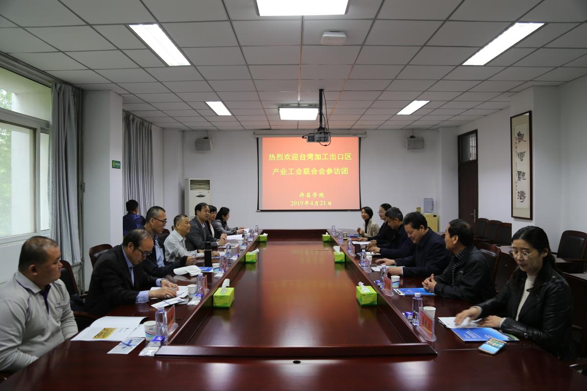 4月21日,台湾加工出口区产业工会联合会总干事何俊男、副理事长张安庆、理事薛振裕来bet36体育在线参访交流,河南省总工会副主席梅宪宾、教科文卫体工会主席符明轩、省总工会外事联络部长张丽丽等陪同参访。院长岳修峰、工会主席高金星、相关部门负责同志接待了参访团一行。