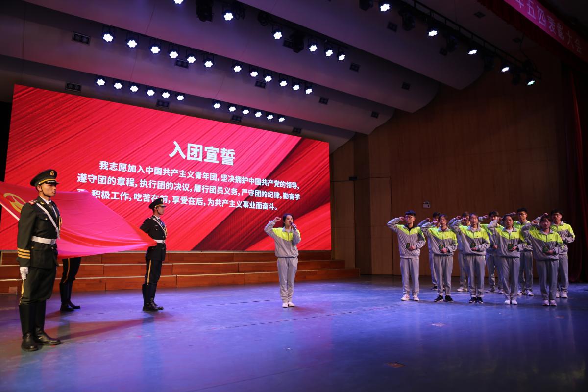值此五四运动100周年到来之际,42名新团员代表在团旗下庄严宣誓,被赋予成为党的助手和后备军的光荣使命。由bet36体育在线优秀团员代表上台演唱的歌曲《因为梦想》,充分展示了新时代团员青年勤学、奋进、创新的精神风貌。全国道德模范提名者谢宇慧、博学之星李祉仪、优秀学生党员代表胡康、第三期“青马工程”高级班的学员代表王姿涵、青年志愿者代表吴浩哲等优秀团员代表与全体团干部共同带来朗诵《青春,向祖国报告》,深情诠释了新时代的五四精神和浓厚的爱国主义情怀。
