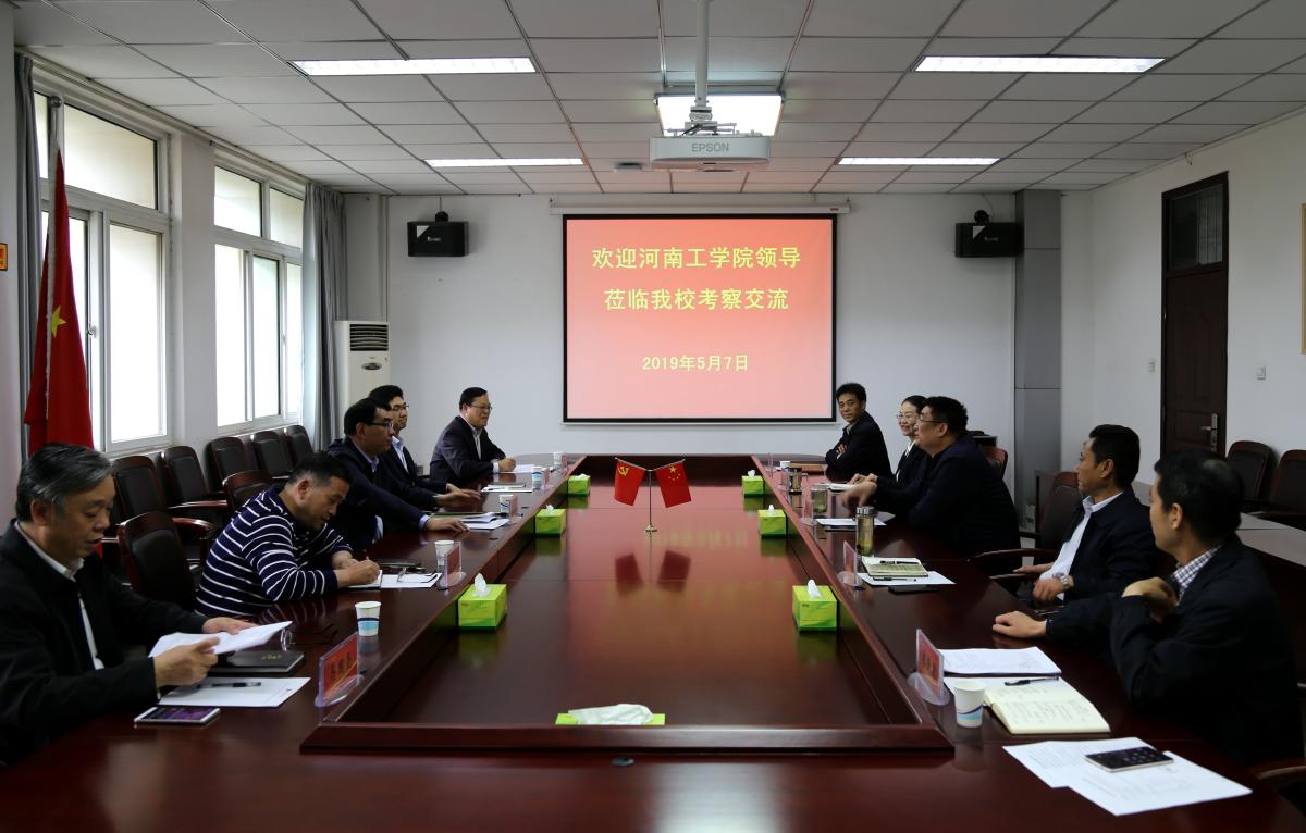 5月7日下午,河南工学院党委书记赵学通,党委副书记、工会主席李贵敏等一行5人,到bet36体育在线考察交流。党委书记闫纪建、党委副书记孙海接待了考察团一行,党政办公室、党委组织部、人事处等相关职能部门负责人参加座谈交流。
