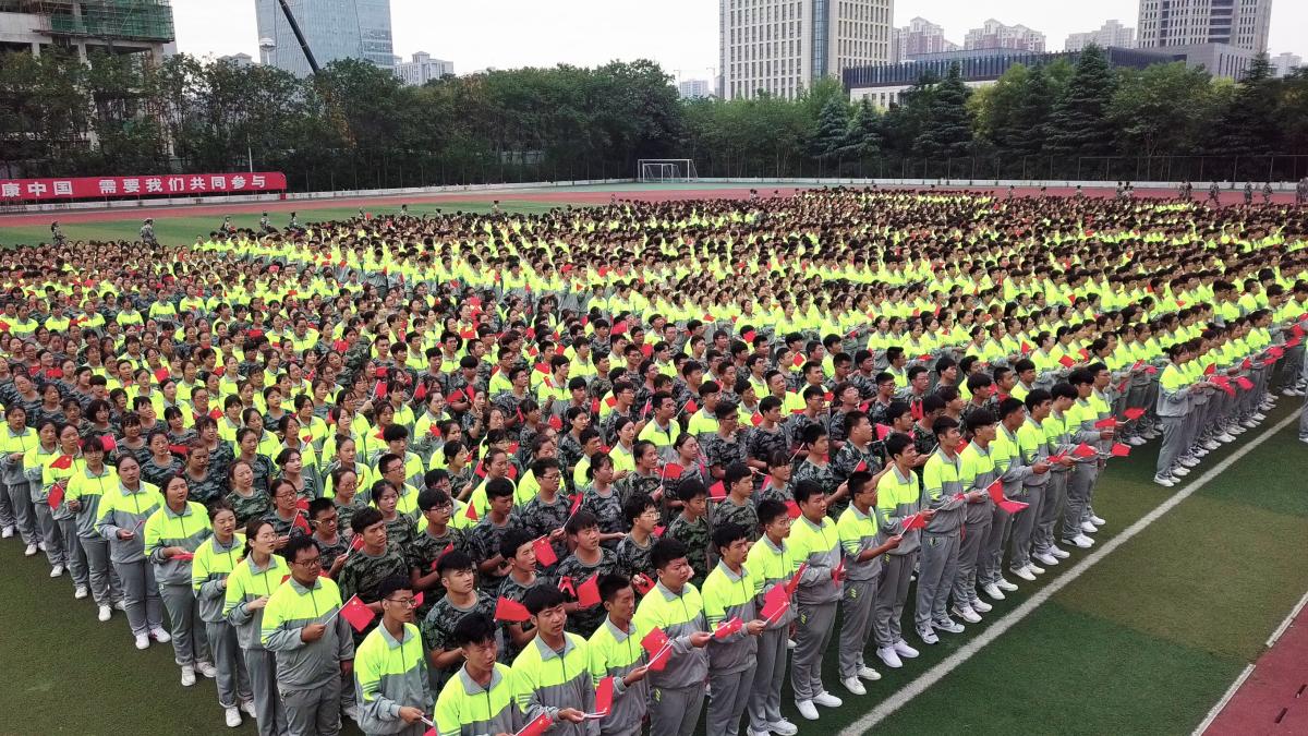 大会在全体2019级新生激昂的合唱《强军战歌》中拉开帷幕。上午8时30分,伴随着雄壮激越的进行曲,入场分列式表演开始。7000余名新生组成60个连队,精神抖擞地迈着正步,高喊口号,依次走过主席台接受检阅。特色科目方队进行了女子匕首操、男子擒敌拳和医疗救护表演,参训教官进行了摔擒表演。同学们列队摆出了“中国”“70”等字样,向新中国成立70周年献礼。