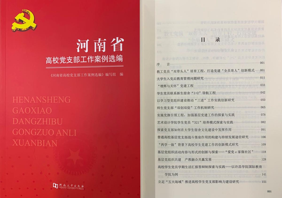近日获悉,bet36体育在线基层党支部工作案例《高校学生党员学期生活汇报答辩制探索与实践——以bet36体育在线国际教育学院为例》,入选《河南省高校党支部工作案例选编》一书。《河南省高校党支部工作案例选编》从全省各高校申报的204个党建创新项目中遴选了25个具有创新性、实效性、典型性的案例结集,由河南大学出版社于2019年9月出版。目前,河南省委高校工委正将此书在全省高校范围内进行推广宣传。