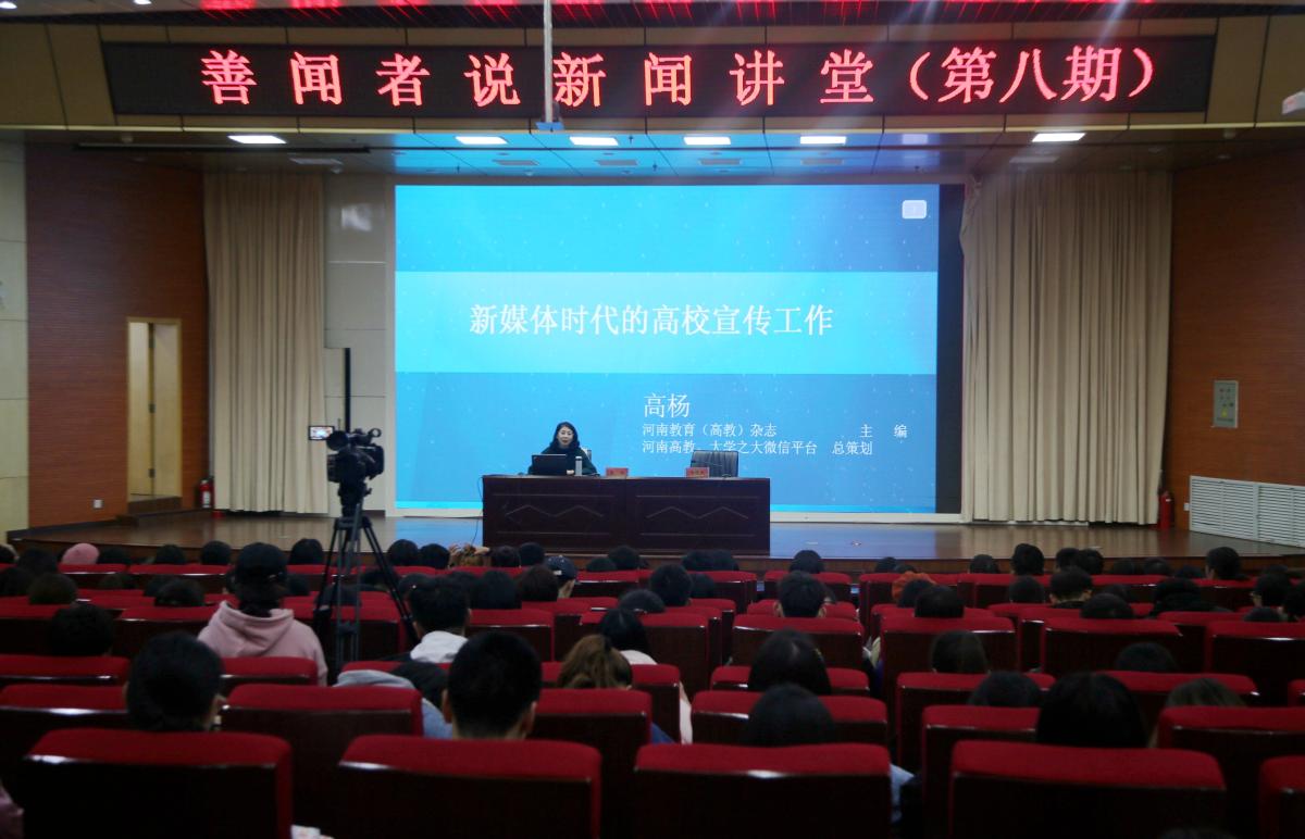 12月13日下午,由bet36体育在线党委宣传部(新闻中心)主办的第8期“善闻者说”新闻讲堂在图书馆二楼学术报告厅举办。河南教育(高教)、河南教育(幼教)杂志主编高杨以“新媒体时代的高校宣传工作”为题,为bet36体育在线各二级学院党总支副书记、各单位新闻信息员、校媒师生作新闻专题讲座。本次讲座由党委宣传部部长、新闻中心主任冯晓民主持。