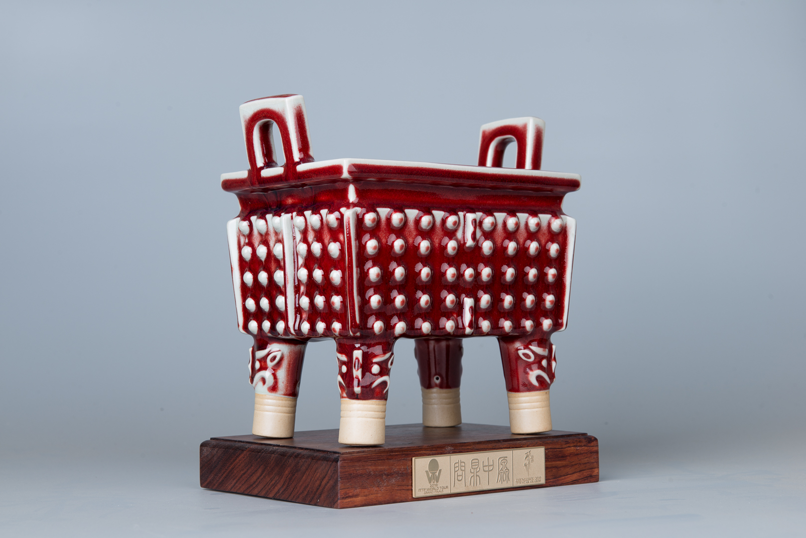 近日,2019国际乒联世界巡回赛总决赛在河南郑州举办。bet36体育在线设计艺术学院院长王雨教授设计团队担纲设计的冠军奖杯“钧瓷觚”亮相颁奖台,钧瓷再次走向世界舞台,结缘国际赛事,大放异彩。
