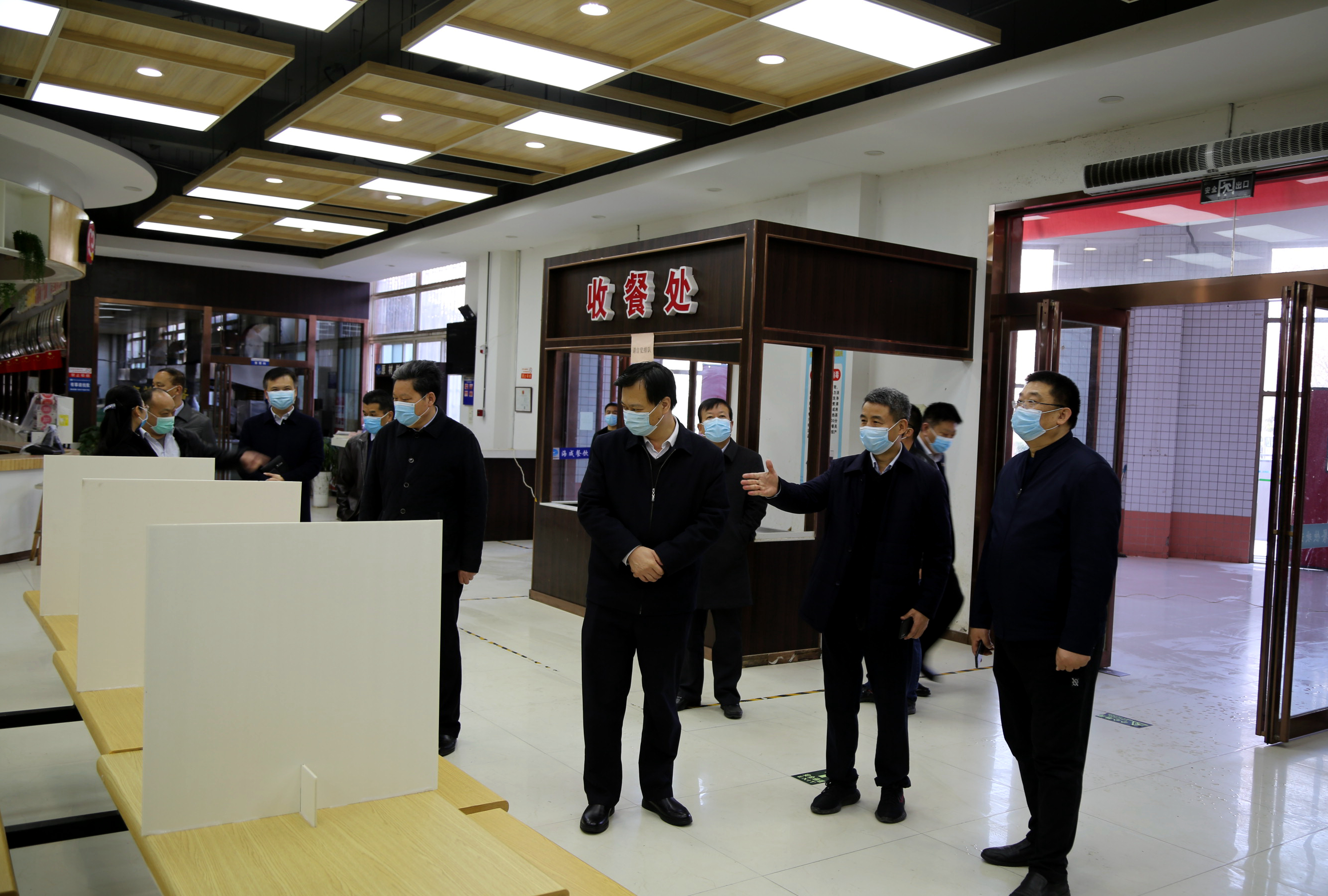 马正兰一行现场察看了食堂、隔离点、防疫物资储备室,详细询问了学校有关防控措施落实情况。闫纪建书记、岳修峰院长介绍了师生状况摸排和动态管理、防护物资储备、线上教学活动、消杀防疫、应急预案等疫情防控工作。