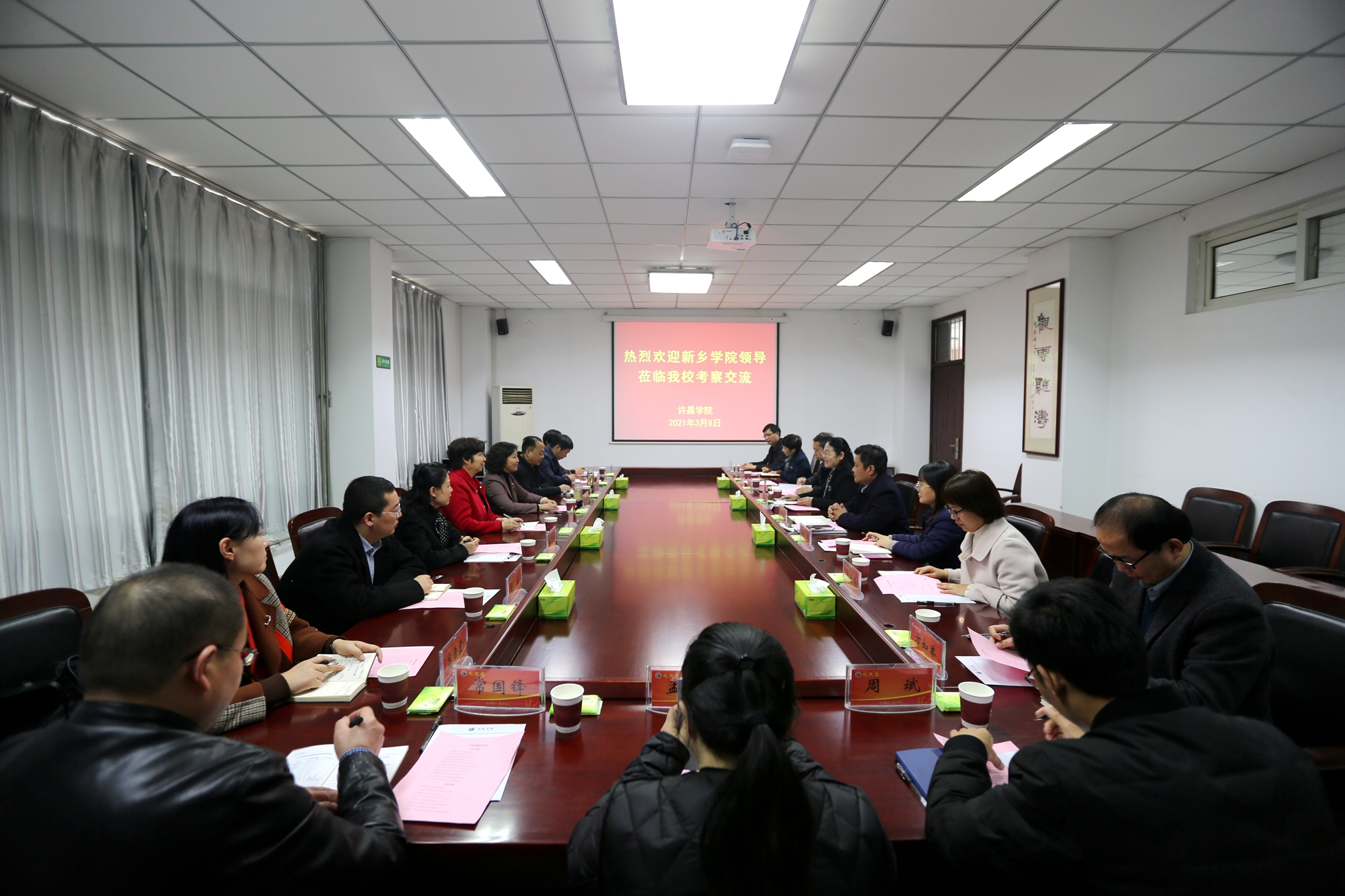 座谈会上,副院长潘春彩代表学校对夏新颜一行表示欢迎,并简要介绍了学校的办学特色和发展情况,她希望两校进一步加强沟通交流,共谋合作发展。副校长夏新颜介绍了新乡学院近年来的有效探索和工作业绩。双方就“十四五”规划编制、学科专业建设、科研管理、就业创业指导等问题进行了深入沟通交流。